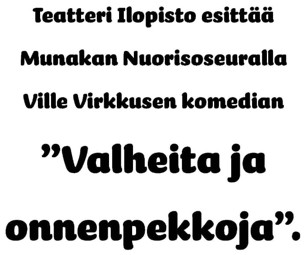 Sunnuntaina 8.3.2026 kello 18.00 Munakan nuorisoseurantalolla sketsiviihdettä suoraan suomalaisen huumorin ykköskorista! Tästä iloa viikon päätteeksi, jolla saa rutkasti voimaa seuraavan viikon arjen aloittamiseen..